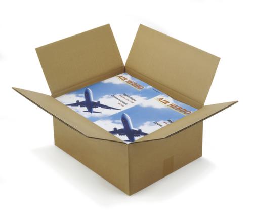 Geschikt voor Postorderverkoop. Van doos met buitenafdekking van kraftpapier in bruin, recyclebaar. gemaakt van 70 % gerecycled materiaal.