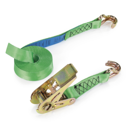 "longDescription": "<h2>Spanband</h2><ul><li>van 100% polyestervezels met geringe rekbaarheid</li><li>door de zachte en flexibele structuur ontstaat er geen schade aan kwetsbare goederen</li><li>temperatuur- en UV-bestendig, trekt geen vuil aan en is bestand tegen chemische producten</li></ul><br><h3>2-delige uitvoering:</h3><ul><li>1 riemdeel met dubbele haken aan het ene uiteinde en een ratel aan het anderen uiteinde</li><li>1 riemdeel met dubbele haken aan het ene uiteinde en een los ander uiteinde</li></ul>",