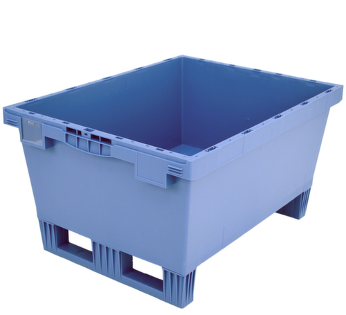 In euromaat. van breukvast polypropyleen in duifblauw. De opgeslagen goederen zijn door de gesloten wanden beschermd tegen stof en de bak is gemakkelijk te reinigen. legbord gesloten met versteviging door verstevigingsribben. Dankzij de sleden gemakkelijk te verplaatsen en in te rijden met een heftruck. Plaatsbesparend stapelbaar. Geschikt voor rollenbanen.