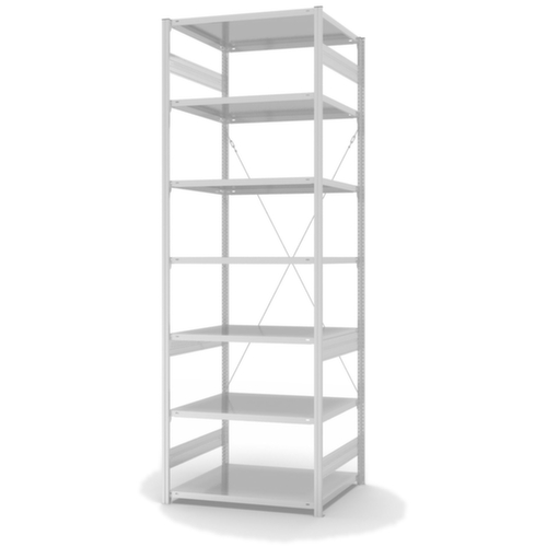 de belangrijkste maten van de hofe magazijnstelling AntiBac® in één oogopslag:7 niveaus met Stalen bodem. vakhoogtes zijn afhankelijk van het doel en uw behoeften verstelbaar in stappen van 25 mm. gebruik eenzijdig - ontworpen voor plaatsing tegen een wand. Hoge stabiliteit door diagonaalschoren. constructie van staal, staanders met antibacteriële coating tegen staphylococcus aureus, pseudomonas aeruginosa en tegen e-coli bacteriën in vergelijkbaar met RAL9016 verkeerswit, niveaus met antibacteriële coating tegen staphylococcus aureus, pseudomonas aeruginosa en tegen e-coli bacteriën in vergelijkbaar met RAL9016 verkeerswit.