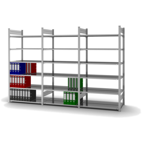 De belangrijkste maten van de hofe van de hofe inhaakstelling in één oogopslag:Op 6 niveau(s) met legborden van plaatstaal / 6 ordnerhoogtes kunt u dossiers, ordners en overig kantoormateriaal optimaal ordenen. niveaus met insteekbare aanslagrand in het midden en legbordrand aan de zijkant van het bovenste vakniveau tegen eruit vallen van ordners. vakhoogtes zijn afhankelijk van het doel en uw behoeften verstelbaar in stappen van 25 mm. gebruik tweezijdig - flexibele opstelling vrijstaand in de ruimte mogelijk. Hoge stabiliteit door stabilisatieliggers. constructie van staal. staanders met corrosiebeschermende zinklaag. niveaus met corrosiebeschermende zinklaag.