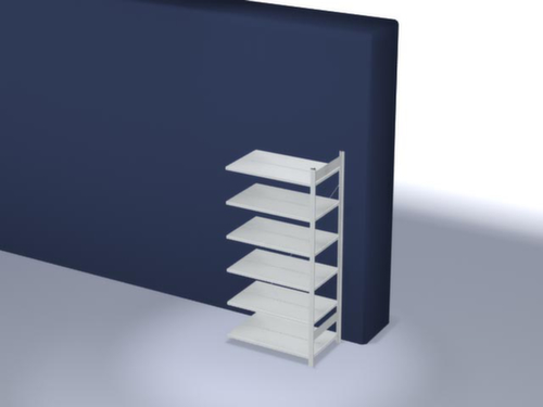De belangrijkste maten van de hofe van de hofe inhaakstelling in één oogopslag:Op 6 niveau(s) met legborden van plaatstaal / 6 ordnerhoogtes kunt u dossiers, ordners en overig kantoormateriaal optimaal ordenen. niveaus met insteekbare aanslagrand in het midden en legbordrand aan de zijkant van het bovenste vakniveau tegen eruit vallen van ordners. vakhoogtes zijn afhankelijk van het doel en uw behoeften verstelbaar in stappen van 25 mm. gebruik tweezijdig - flexibele opstelling vrijstaand in de ruimte mogelijk. Hoge stabiliteit door stabilisatieliggers. constructie van staal. staanders verzinkt met kunststof coating in RAL7035 lichtgrijs. niveaus verzinkt met kunststof coating in RAL7035 lichtgrijs.