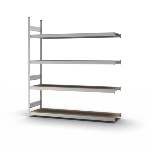 de belangrijkste maten van de hofe breedvakstelling in één oogopslag:4 niveaus met houten vloer. niveaus met versteviging door dwarsprofielen. vakhoogtes zijn afhankelijk van het doel en uw behoeften verstelbaar in stappen van 25 mm. gebruik eenzijdig - ontworpen voor plaatsing tegen een wand. Door gegolfde verbindingsplaten in de diepterichting en stalen voetplaten staat de stelling zeer stevig. De profielafdekkappen bovenaan zorgen voor een nette afwerking. constructie van staal, staanders met corrosiebeschermende zinklaag, traversen met corrosiebeschermende zinklaag.