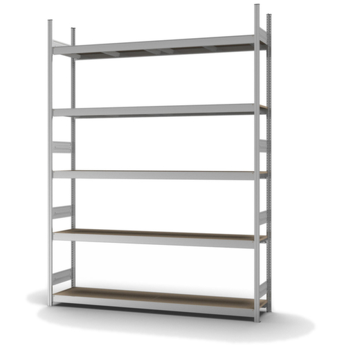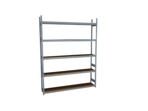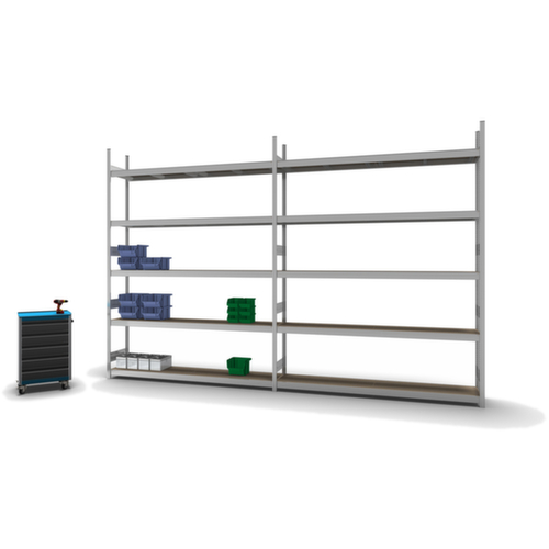 de belangrijkste maten van de hofe breedvakstelling in één oogopslag:5 niveaus met houten vloer. niveaus met versteviging door dwarsprofielen. vakhoogtes zijn afhankelijk van het doel en uw behoeften verstelbaar in stappen van 25 mm. gebruik eenzijdig - ontworpen voor plaatsing tegen een wand. Door gegolfde verbindingsplaten in de diepterichting en stalen voetplaten staat de stelling zeer stevig. De profielafdekkappen bovenaan zorgen voor een nette afwerking. constructie van staal, staanders met corrosiebeschermende zinklaag, traversen met corrosiebeschermende zinklaag.