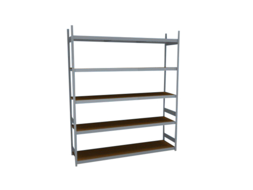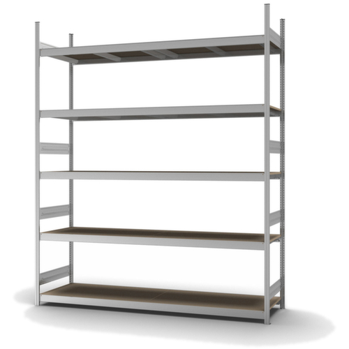 de belangrijkste maten van de hofe breedvakstelling in één oogopslag:5 niveaus met houten vloer. niveaus met versteviging door dwarsprofielen. vakhoogtes zijn afhankelijk van het doel en uw behoeften verstelbaar in stappen van 25 mm. gebruik eenzijdig - ontworpen voor plaatsing tegen een wand. Door gegolfde verbindingsplaten in de diepterichting en stalen voetplaten staat de stelling zeer stevig. De profielafdekkappen bovenaan zorgen voor een nette afwerking. constructie van staal, staanders met corrosiebeschermende zinklaag, traversen met corrosiebeschermende zinklaag.