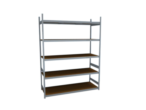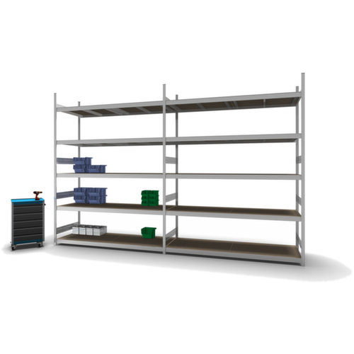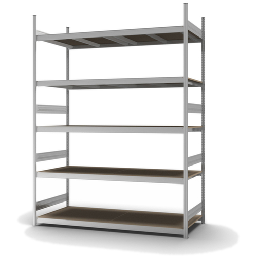 de belangrijkste maten van de hofe breedvakstelling in één oogopslag:5 niveaus met houten vloer. niveaus met versteviging door dwarsprofielen. vakhoogtes zijn afhankelijk van het doel en uw behoeften verstelbaar in stappen van 25 mm. gebruik eenzijdig - ontworpen voor plaatsing tegen een wand. Door gegolfde verbindingsplaten in de diepterichting en stalen voetplaten staat de stelling zeer stevig. De profielafdekkappen bovenaan zorgen voor een nette afwerking. constructie van staal, staanders met corrosiebeschermende zinklaag, traversen met corrosiebeschermende zinklaag.
