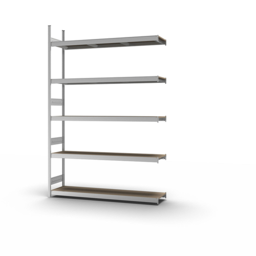 de belangrijkste maten van de hofe breedvakstelling in één oogopslag:5 niveaus met houten vloer. niveaus met versteviging door dwarsprofielen. vakhoogtes zijn afhankelijk van het doel en uw behoeften verstelbaar in stappen van 25 mm. gebruik eenzijdig - ontworpen voor plaatsing tegen een wand. Door gegolfde verbindingsplaten in de diepterichting en stalen voetplaten staat de stelling zeer stevig. De profielafdekkappen bovenaan zorgen voor een nette afwerking. constructie van staal, staanders met corrosiebeschermende zinklaag, traversen met corrosiebeschermende zinklaag.