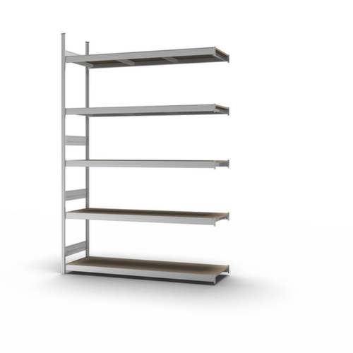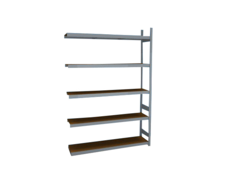 de belangrijkste maten van de hofe breedvakstelling in één oogopslag:5 niveaus met houten vloer. niveaus met versteviging door dwarsprofielen. vakhoogtes zijn afhankelijk van het doel en uw behoeften verstelbaar in stappen van 25 mm. gebruik eenzijdig - ontworpen voor plaatsing tegen een wand. Door gegolfde verbindingsplaten in de diepterichting en stalen voetplaten staat de stelling zeer stevig. De profielafdekkappen bovenaan zorgen voor een nette afwerking. constructie van staal, staanders met corrosiebeschermende zinklaag, traversen met corrosiebeschermende zinklaag.