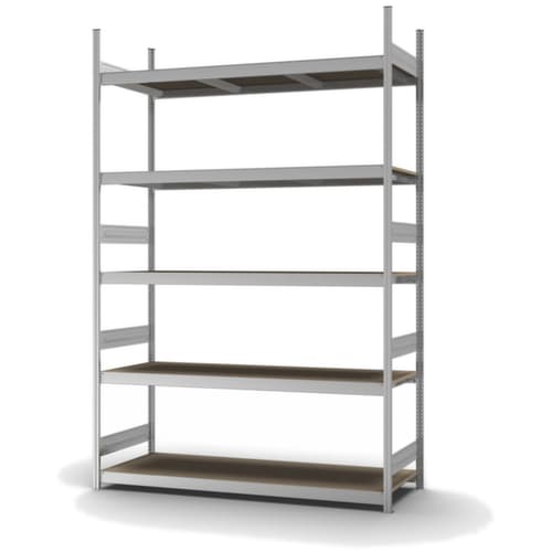 de belangrijkste maten van de hofe breedvakstelling in één oogopslag:5 niveaus met houten vloer. niveaus met versteviging door dwarsprofielen. vakhoogtes zijn afhankelijk van het doel en uw behoeften verstelbaar in stappen van 25 mm. gebruik eenzijdig - ontworpen voor plaatsing tegen een wand. Door gegolfde verbindingsplaten in de diepterichting en stalen voetplaten staat de stelling zeer stevig. De profielafdekkappen bovenaan zorgen voor een nette afwerking. constructie van staal, staanders met corrosiebeschermende zinklaag, traversen met corrosiebeschermende zinklaag.