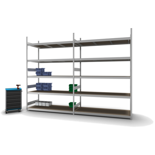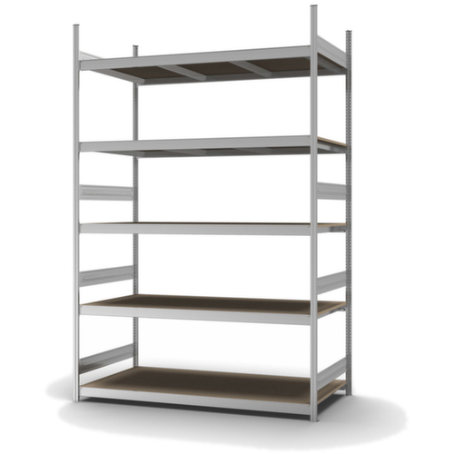 de belangrijkste maten van de hofe breedvakstelling in één oogopslag:5 niveaus met houten vloer. niveaus met versteviging door dwarsprofielen. vakhoogtes zijn afhankelijk van het doel en uw behoeften verstelbaar in stappen van 25 mm. gebruik eenzijdig - ontworpen voor plaatsing tegen een wand. Door gegolfde verbindingsplaten in de diepterichting en stalen voetplaten staat de stelling zeer stevig. De profielafdekkappen bovenaan zorgen voor een nette afwerking. constructie van staal, staanders met corrosiebeschermende zinklaag, traversen met corrosiebeschermende zinklaag.