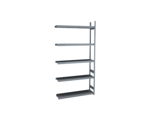 de belangrijkste maten van de hofe breedvakstelling in één oogopslag:5 niveaus met Stalen bodem. vakhoogtes zijn afhankelijk van het doel en uw behoeften verstelbaar in stappen van 25 mm. gebruik tweezijdig - flexibele opstelling vrijstaand in de ruimte mogelijk. Door gegolfde verbindingsplaten in de diepterichting en stalen voetplaten staat de stelling zeer stevig. De profielafdekkappen bovenaan zorgen voor een nette afwerking. constructie van staal, staanders met corrosiebeschermende zinklaag, niveaus met corrosiebeschermende zinklaag,