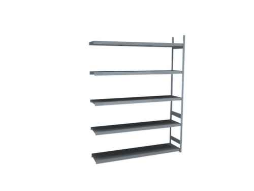 de belangrijkste maten van de hofe breedvakstelling in één oogopslag:5 niveaus met Stalen bodem. vakhoogtes zijn afhankelijk van het doel en uw behoeften verstelbaar in stappen van 25 mm. gebruik tweezijdig - flexibele opstelling vrijstaand in de ruimte mogelijk. Door gegolfde verbindingsplaten in de diepterichting en stalen voetplaten staat de stelling zeer stevig. De profielafdekkappen bovenaan zorgen voor een nette afwerking. constructie van staal, staanders met corrosiebeschermende zinklaag, niveaus met corrosiebeschermende zinklaag,