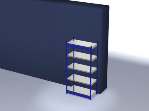 de belangrijkste maten van de hofe magazijnstelling in één oogopslag:5 niveaus met Stalen bodem. niveaus met veiligheidsrand voor bescherming tegen verwondingen. 3-voudige veiligheidsrand van 40 mm hoog zorgt voor hoge stabiliteit en bescherming tegen verwondingen. vakhoogtes zijn afhankelijk van het doel en uw behoeften verstelbaar in stappen van 50 mm. opstelhoek recht. gebruik tweezijdig - flexibele opstelling vrijstaand in de ruimte mogelijk. Hoge stabiliteit dankzij lengteliggers. constructie van staal, staanders met slijtvaste kunststof coating in RAL5010 gentiaanblauw, niveaus met corrosiebeschermende zinklaag.