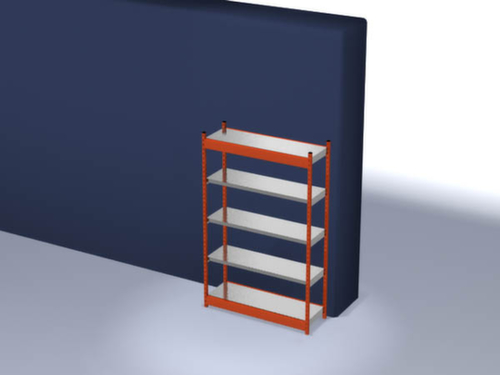 de belangrijkste maten van de hofe magazijnstelling in één oogopslag:5 niveaus met Stalen bodem. niveaus met veiligheidsrand voor bescherming tegen verwondingen. 3-voudige veiligheidsrand van 40 mm hoog zorgt voor hoge stabiliteit en bescherming tegen verwondingen. vakhoogtes zijn afhankelijk van het doel en uw behoeften verstelbaar in stappen van 50 mm. opstelhoek recht. gebruik tweezijdig - optimale benutting van de ruimte en meer opbergruimte, want vrijstaand in de ruimte te plaatsen. Hoge stabiliteit dankzij lengteliggers. constructie van staal, staanders met slijtvaste kunststof coating in RAL2004 zuiver oranje, niveaus met corrosiebeschermende zinklaag.