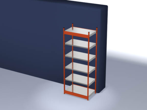 de belangrijkste maten van de hofe magazijnstelling in één oogopslag:6 niveaus met Stalen bodem. niveaus met veiligheidsrand voor bescherming tegen verwondingen. 3-voudige veiligheidsrand van 40 mm hoog zorgt voor hoge stabiliteit en bescherming tegen verwondingen. vakhoogtes zijn afhankelijk van het doel en uw behoeften verstelbaar in stappen van 50 mm. opstelhoek recht. gebruik tweezijdig - flexibele opstelling vrijstaand in de ruimte mogelijk. Hoge stabiliteit dankzij lengteliggers. constructie van staal, staanders met slijtvaste kunststof coating in RAL2004 zuiver oranje, niveaus met corrosiebeschermende zinklaag.