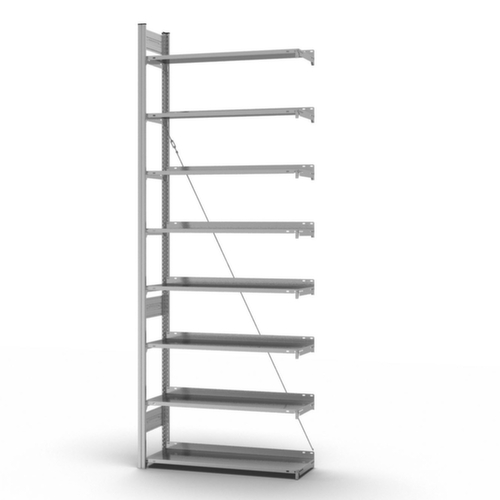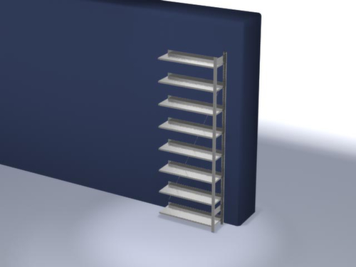 De belangrijkste maten van de hofe van de hofe inhaakstelling in één oogopslag:Op 8 niveau(s) met legborden van plaatstaal / 8 ordnerhoogtes kunt u dossiers, ordners en overig kantoormateriaal optimaal ordenen. niveaus met aanslagrand en legbordrand aan de zijkant van het bovenste vakniveau tegen eruit vallen van ordners. vakhoogtes zijn afhankelijk van het doel en uw behoeften verstelbaar in stappen van 25 mm. gebruik eenzijdig - ontworpen voor plaatsing tegen een wand. Hoge stabiliteit door diagonaalschoren. constructie van staal. staanders met corrosiebeschermende zinklaag. niveaus met corrosiebeschermende zinklaag.