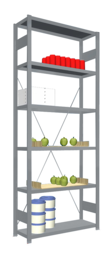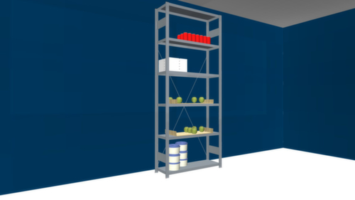 De belangrijkste maten van de hofe van de hofe stelling voor levensmiddelen in één oogopslag:6 niveaus met RVS legbord. C-vormige langsdragers met 3-voudige afkanting zorgen voor hoge stabiliteit en bescherming tegen verwondingen. vakhoogtes zijn afhankelijk van het doel en uw behoeften verstelbaar in stappen van 150 mm. gebruik eenzijdig - ontworpen voor plaatsing tegen een wand. zeer stabiel door diagonaalschoren voor lengteversteviging en gegolfde verbindingsplaten in de diepterichting. constructie van RVS, Door gegolfde verbindingsplaten in de diepterichting en stalen voetplaten staat de stelling zeer stevig. De profielafdekkappen bovenaan zorgen voor een nette afwerking. staander met voetplaat (vastschroefbaar).