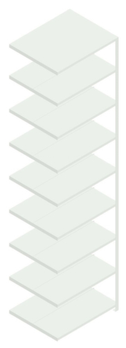 Voor uw veiligheid: volgens DIN EN 15635 moeten legbordstellingen die 4 keer zo hoog zijn als de stellingdiepte (verhouding 4:1) aan de vloer worden bevestigd en geborgd. De aangegeven vaklasten gelden bij een gelijkmatig verdeelde belasting. extra legborden/niveaus zijn leverbaar als accessoire en zijn uit te breiden tot de maximale veldlast.