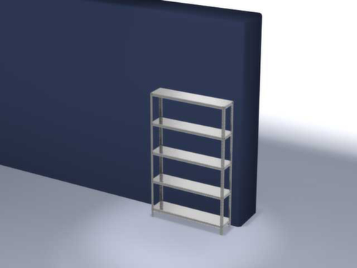 de belangrijkste maten van de hofe magazijnstelling in één oogopslag:5 niveaus met Stalen bodem. 3-voudige veiligheidsrand van 40 mm hoog en gesloten hoeken zorgt voor hoge stabiliteit en bescherming tegen verwondingen. vakhoogtes zijn afhankelijk van het doel en uw behoeften verstelbaar in stappen van 25 mm. gebruik eenzijdig - ontworpen voor plaatsing tegen een wand. constructie van staal, staanders met corrosiebeschermende zinklaag, niveaus met corrosiebeschermende zinklaag.