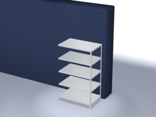de belangrijkste maten van de hofe magazijnstelling in één oogopslag:5 niveaus met Stalen bodem. 3-voudige veiligheidsrand van 40 mm hoog en gesloten hoeken zorgt voor hoge stabiliteit en bescherming tegen verwondingen. vakhoogtes zijn afhankelijk van het doel en uw behoeften verstelbaar in stappen van 25 mm. gebruik eenzijdig - ontworpen voor plaatsing tegen een wand. constructie van staal, staanders verzinkt met kunststof coating in RAL7035 lichtgrijs, niveaus verzinkt met kunststof coating in RAL7035 lichtgrijs.