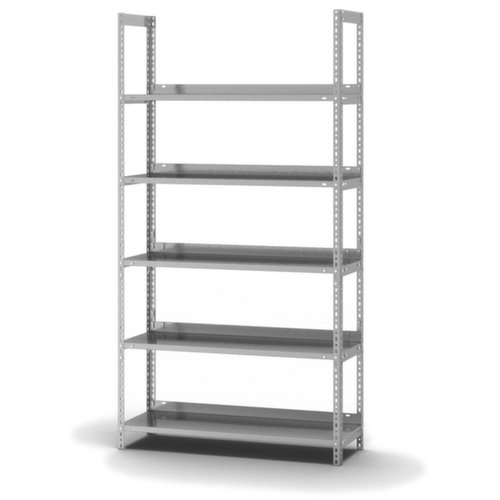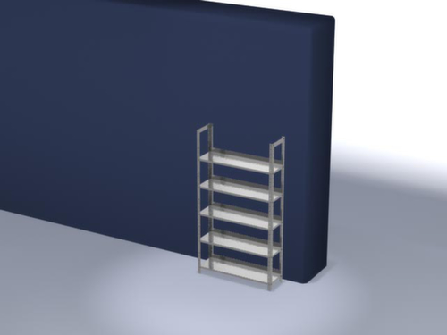 Voor uw veiligheid: volgens DIN EN 15635 moeten legbordstellingen die 4 keer zo hoog zijn als de stellingdiepte (verhouding 4:1) aan de vloer worden bevestigd en geborgd. De aangegeven vaklasten gelden bij een gelijkmatig verdeelde belasting. extra legborden/niveaus zijn leverbaar als accessoire en zijn uit te breiden tot de maximale veldlast.