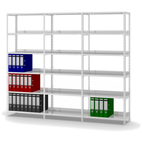 De belangrijkste maten van de hofe dossierstelling in één oogopslag:6 niveau(s) met legborden van hoogwaardig dun plaatstaal, waarvan 1 afdeklegbord / 5 ordnerhoogtes voor 54 ordners. niveaus met aanslagranden en legbordrand aan de zijkant van het bovenste vakniveau (zonder extra schoren) tegen het uitvallen van ordners en tegelijkertijd onovertroffen stabiliteit in de lengte- en diepterichting, veiligheidsrand tegen verwondingen. gebruik eenzijdig - ontworpen voor plaatsing tegen een wand. constructie van staal, staanders verzinkt met kunststof coating in RAL7035 lichtgrijs, niveaus verzinkt met kunststof coating in RAL7035 lichtgrijs.