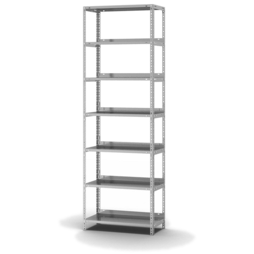 Voor uw veiligheid: volgens DIN EN 15635 moeten legbordstellingen die 4 keer zo hoog zijn als de stellingdiepte (verhouding 4:1) aan de vloer worden bevestigd en geborgd. De aangegeven vaklasten gelden bij een gelijkmatig verdeelde belasting. extra legborden/niveaus zijn leverbaar als accessoire en zijn uit te breiden tot de maximale veldlast.