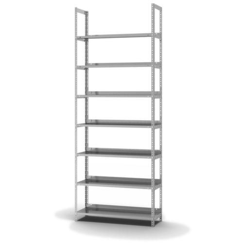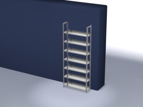 Voor uw veiligheid: volgens DIN EN 15635 moeten legbordstellingen die 4 keer zo hoog zijn als de stellingdiepte (verhouding 4:1) aan de vloer worden bevestigd en geborgd. De aangegeven vaklasten gelden bij een gelijkmatig verdeelde belasting. extra legborden/niveaus zijn leverbaar als accessoire en zijn uit te breiden tot de maximale veldlast.
