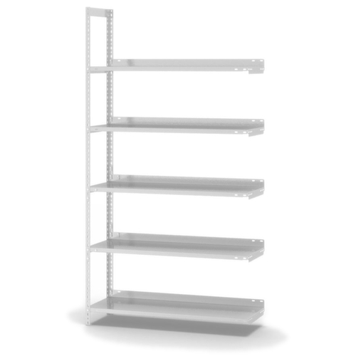 De belangrijkste maten van de hofe dossierstelling in één oogopslag:5 niveau(s) met legborden van hoogwaardig dun plaatstaal, zonder afdeklegbord / 5 ordnerhoogtes voor 60 ordners. niveaus met aanslagranden en legbordrand aan de zijkant van het bovenste vakniveau (zonder extra schoren) tegen het uitvallen van ordners en tegelijkertijd onovertroffen stabiliteit in de lengte- en diepterichting, veiligheidsrand tegen verwondingen. gebruik eenzijdig - ontworpen voor plaatsing tegen een wand. constructie van staal, staanders verzinkt met kunststof coating in RAL7035 lichtgrijs, niveaus verzinkt met kunststof coating in RAL7035 lichtgrijs.