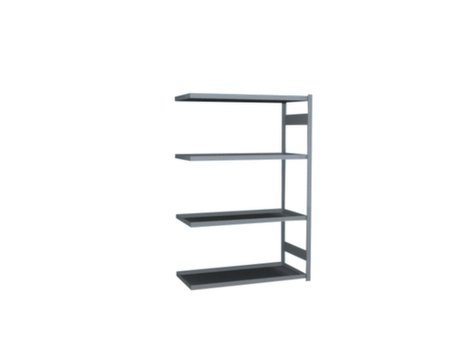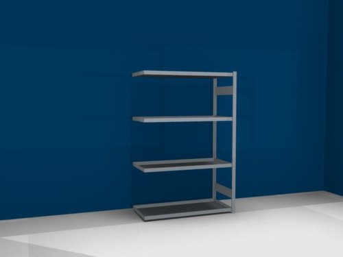 de belangrijkste maten van de hofe stelling voor kleinemballage in één oogopslag4 niveaus met opvanglegborden. niveaus met lekvrije rand (50 mm, gelast) en veiligheidsfels aan de bovenzijde ter bescherming tegen verwondingen. gebruik tweezijdig - flexibele opstelling vrijstaand in de ruimte mogelijk. Hoge stabiliteit door stabilisatieliggers. Door gegolfde verbindingsplaten in de diepterichting en stalen voetplaten staat de stelling zeer stevig. De profielafdekkappen bovenaan zorgen voor een nette afwerking. staander van staal met corrosiebeschermende zinklaag. traversen met corrosiebeschermende zinklaag.