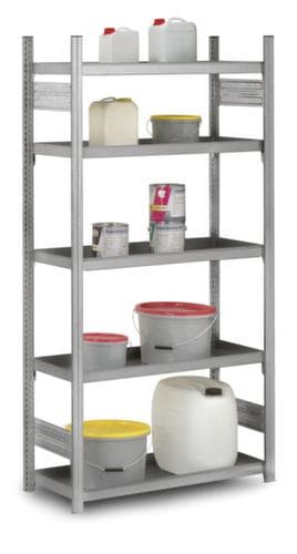 aanbouwveld. Geschikt voor magazijn en werkplaats. geschikt voor gevaarlijke stoffen en kleinemballage. kliksysteem ORION PLUS - snelle montage en alle legborden kunnen op elk moment zonder gereedschap variabel worden geplaatst.