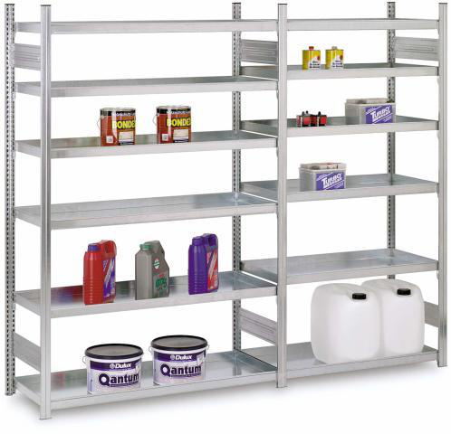 "description": "aanbouwveld, HxBxD 2500x1310x435mm, vakl. 200kg, 6xopvanglegborden, eenzijdig, staanders verzinkt, niveaus verzinkt",