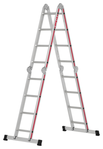"longDescription": "<h2>Multifunctionele ladder</h2><ul><li>Universeel inzetbaar - als staande en enkele ladder of als werkplatform</li><li>Gemakkelijk te bedienen beugelverbinding</li><li>Robuuste sporten gemaakt van gewalst profiel</li><li>Veilig gebruik dankzij veiligheidsgewrichten voor het vergrendelen en ontgrendelen van de ladderdelen</li></ul>",