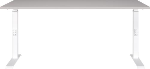 blad van spaanplaat met krasvaste en onderhoudsvriendelijke melamineharscoating in decor decor kasjmier. rand alle randen zijn door slagvaste ABS-randen beschermd tegen ontsierende scheuren en beschadigingen. C-voetonderstel van metaal met slag- en krasvaste poedercoating in wit. hoogteverstelling door mechanisme. frame met nivelleerbare kunststof glijders, ideaal voor het opheffen van oneffenheden in de vloer.