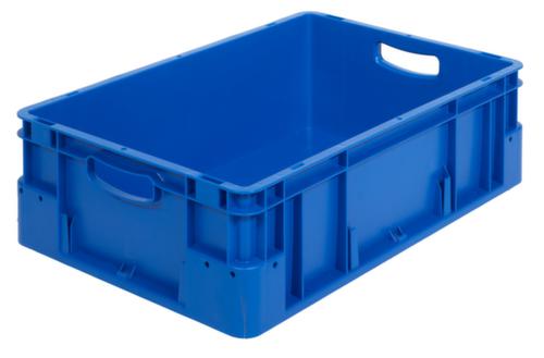 maten afgestemd op europallet. van breukvast polypropyleen in blauw. Wanden gesloten, bodem gesloten. Bodem met versteviging door verstevigingsribben. eenvoudig transport door draaggrepen. met etikethouder voor individuele en duidelijke belettering. eenvoudig te stapelen met stapelrand veilig Meervoudig stapelbaar. geschikt voor levensmiddelen. Geschikt voor rollenbanen. Temperatuurbestendig -40 °C tot +90 °C. Geschikt voor verschillende stoffen, gelieve aan te vragen.