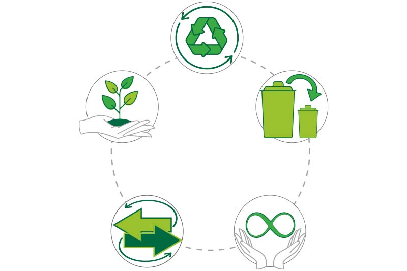 Laten we de 5 manieren benutten (zie grafi ek) om het gebruik van verpakkingen te optimaliseren en de impact op het milieu te verkleinen