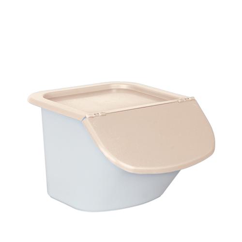 van breukvast polypropyleen. bak in wit en deksel in beige. wanden: gladde, naadloze vlakken voor eenvoudige reiniging. geschikt voor elke soort stortgoed. afsluitbaar met klapdeksel. Het deksel kan ook worden geopend als er meerdere boxen op elkaar zijn gestapeld. Door de afgeschuinde grijpopening is de bakinhoud gemakkelijk toegankelijk. geschikt voor levensmiddelen.