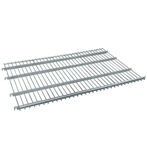 Het legbord wordt ingehangen. Tegen wegglijden van neergelegde voorwerpen uitgerust met 20 mm hoog frame. van draadgaas, galvanisch blauw verzinkt.