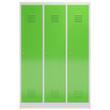 per vak 1 hoedenplank en 1 kledingstang met 4 dubbele haken. openslaande deur met ventilatiesleuven. afsluitbaar met klinksluiting voor hangslot. elk vak apart afsluitbaar. De sokkel onder de kast zorgt ervoor dat het gewicht van de kast gelijkmatig over de vloer wordt verdeeld. Hierdoor staat de kast stabieler en kan hij zwaardere lasten dragen dan een kast met voeten. En omdat er geen vuil, stof en vocht onder kan komen, hoeft er onder de kast niet te worden schoongemaakt. constructie van staal, gelast. romp met elektrostatische poedercoating in RAL7035 lichtgrijs, front met elektrostatische poedercoating in RAL 6018 geelgroen.