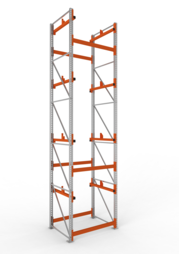 de belangrijkste maten van de META kabelhaspelstelling MULTIPAL in één oogopslag:4 niveaus met kabelhaspelsteun. niveaus met geleidehulzen aan de bomen voor haspelhouder. Zeer stabiel dankzij diagonaal- en horizontaalschoren. constructie van staal, staanders met corrosiebeschermende zinklaag, niveaus met slijtvaste kunststof coating in RAL2001 roodoranje.