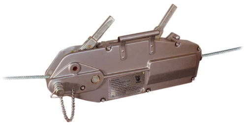 "longDescription": "<h2>Trekontlasting</h2><strong>voor gebruik in de industrie</strong><br><ul><li>Gemakkelijk en veilig te hanteren, dankzij het ergonomische, vrijwel onderhoudsvrije ontwerp.</li><li>De grote slagweg resulteert in een hoge werksnelheid</li><li>Compacte behuizing van aluminiumlegering met hoge sterkte voor een uiterst laag eigen gewicht</li><li>Slijtagearme, parallelle klembekken met een groot oppervlak beschermen de tractiekabel door een gelijkmatige oppervlaktebelasting</li><li>Stabiliteit dankzij een gladde basis met een groot oppervlak, zowel in horizontale als verticale werkpositie</li><li>Touwtoevoerhendel en terugtrekhendel in één vlak maken het smalle ontwerp mogelijk en garanderen een centrisch krachtverloop </li><li>Overbelastingsbeveiliging door middel van een breekpen in de invoerhefboom</li><li>Reserve breekpennen bevinden zich in de hendel van de handhendel of in de draagbeugel en kunnen worden vervangen zonder het trektouw te lossen</li></ul><strong>Goed om te weten!</strong><br>Deze kabellier is speciaal ontwikkeld voor toepassingen in de industrie, bouwnijverheid, bovengrondse leidingbouw, scheepsbouw en olieraffinaderijen.<br>",
