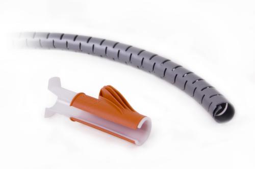 "metaDescription": "Kabelslang met kabelgeleider - v. bureau, LxØ 3000x25mm, m. trekhulp, zilverkleurig",