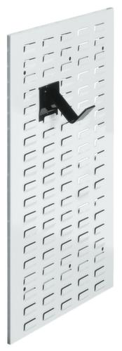 "longDescription": "<h2>Gegroefde plaat</h2><strong>de systematische weg naar meer orde</strong><br><ul><li><strong>naar wens uit te breiden</strong> - compatibel met geperforeerde platen en magazijnbakken</li><li><strong>gemakkelijk en individueel in te delen</strong> - bakken of haken gewoon in de perforatie van de plaat haken, altijd weer verplaatsbaar</li><li>Stabiel en robuust - rondom van gevouwen plaatstaal</li><li>Stabiliteit van versterkte panelen - Verstijving door robuuste balken</li></ul>",