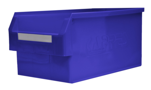 van slagvast polyethyleen in blauw. eenvoudig transport door verstevigde verzonken greep. legbord gesloten met versteviging door verstevigingsribben. met etikethouder voor individuele en duidelijke belettering voor belettering. temperatuurbestendig van -40 tot +80 °C. eenvoudig te stapelen met stapelrand stapelbaar. Geschikt voor rollenbanen.