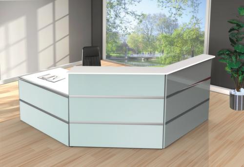 "metaDescription": "Kerkmann Rechte aanbouwbalie Atlantis - HxBxD 1080x1350x1015mm, blad wit, front wit, front glas",