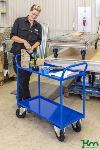 etage(s) van staal elektrolytisch gegalvaniseerd. etage(s) met afrolrand. duwbeugel hoog. frame elektrolytisch gegalvaniseerd. constructie van staal (stevig gelast. Dit geeft de constructie de nodige stevigheid en stabiliteit om hem voor allerlei toepassingen in te zetten). De 2 zwenk- en 2 bokwielen die eronder zijn gemonteerd, sporen uitstekend en rollen moeiteloos op rechte en bochtige trajecten, waardoor rijden weinig krachtsinspanning kost. wiel Ø 160 mm. wielen met lekvrij, vloervriendelijk massief rubber-banden op breukvaste en robuuste polypropyleen-velg. behuizing van staal. wielstand parallel.