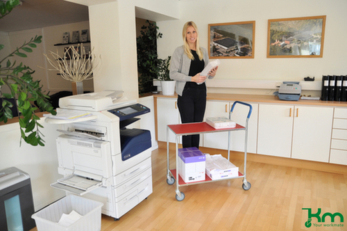 etage(s) van staal met kunststof laag in beuken. duwbeugel hoog, met kunststof ommanteling. onderstel met slag- en krasvaste poedercoating in zilverkleurig. constructie van staal. Gemakkelijk te manoeuvreren en verrijden door 4 zwenkwielen. wiel Ø 100 mm. wielen met vloervriendelijke TPE-banden op breukvaste en robuuste polypropyleen-velg. wielnaaf met Precisiekogellager. behuizing van staal.