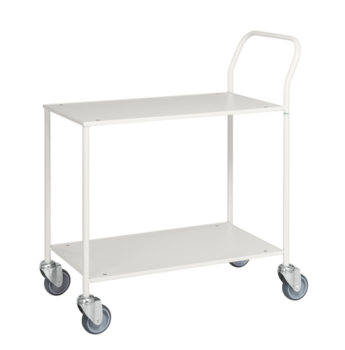 etage(s) met slijtvaste en vochtbestendige melaminecoating in wit. duwbeugel hoog. onderstel met slag- en krasvaste poedercoating in wit. constructie van staal (stevig gelast. Dit geeft de constructie de nodige stevigheid en stabiliteit om hem voor allerlei toepassingen in te zetten). Gemakkelijk te manoeuvreren en verrijden door 4 zwenkwielen. wiel Ø 100 mm. met vloervriendelijke TPE-banden. behuizing van staal.