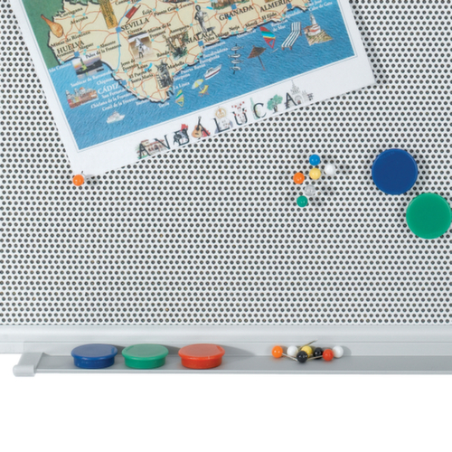 "metaDescription": "Franken Prikbord Pin'n'Mag - HxB 900x1200mm, bord metaal/textiel, grijs, opprikbaar, magnetisch, opbergbak, frame aluminium zilverkleurig",