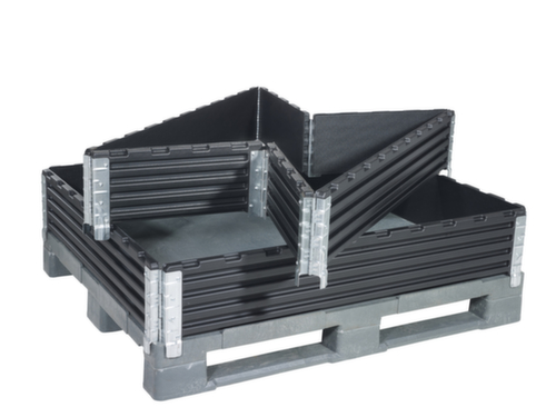 "longDescription": "<h2>Plastic bovenframe</h2><strong>individueel stapelbaar</strong><br><ul><li><strong>Ruimtebesparend transport</strong> - eenvoudig opvouwbaar</li><li><strong>Robuust en duurzaam</strong> - frame gemaakt van ABS</li><li><strong>Absoluut stabiel</strong> dankzij in elkaar grijpende versterkingen</li><li><strong>voor opslag in palletafmeting</strong> - met 4 scharnieren</li></ul><br>Dit palletstapelframe is geschikt voor industriële en europallets. Hij is gemaakt van stevig 20 mm dik ABS met extra in elkaar grijpende versterkingen. De afzonderlijke elementen kunnen afzonderlijk worden gestapeld en gemakkelijk worden opgevouwen voor transport. Het frame is optioneel verkrijgbaar met vier of zes diagonale scharnieren.<br><br>Met handige accessoires kunt u het stapelframe precies op uw behoeften afstemmen. Met verdelers kunt u uw opgeslagen goederen binnen een pallet verdelen. Een deksel van gerecycled ABS beschermt de inhoud tegen vuil of onbevoegde inkijk. Met de stapelhoeken kunt u extra pallets op het frame stapelen.<br><br><strong>Levering!</strong><br><ul><li>Wordt ongemonteerd geleverd en is eenvoudig zelf te monteren</li></ul><br><strong>Goed om te weten!</strong><br>De opzetframes worden geleverd in een voordeelverpakking met twee stuks. Wordt ongemonteerd geleverd en is eenvoudig zelf te monteren.<br>",